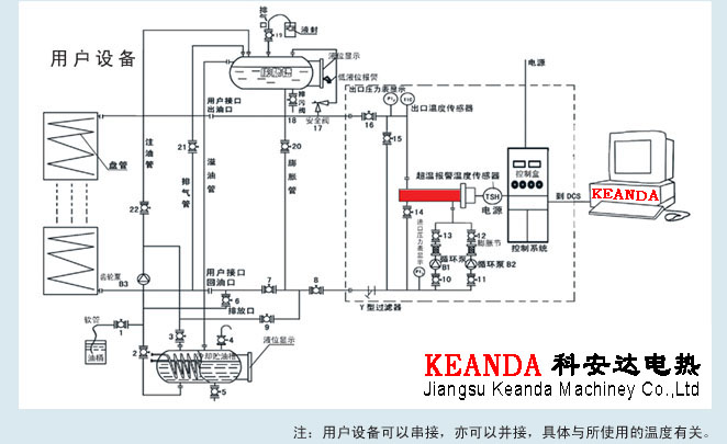 主要功能:導熱油爐系統采用自動控制、自動溫度顯示、恒溫保護、超溫報警。加熱溫度控制在±1℃。并具有多重保護和可靠監控裝置、并可與計算機連網,實現人機對話。